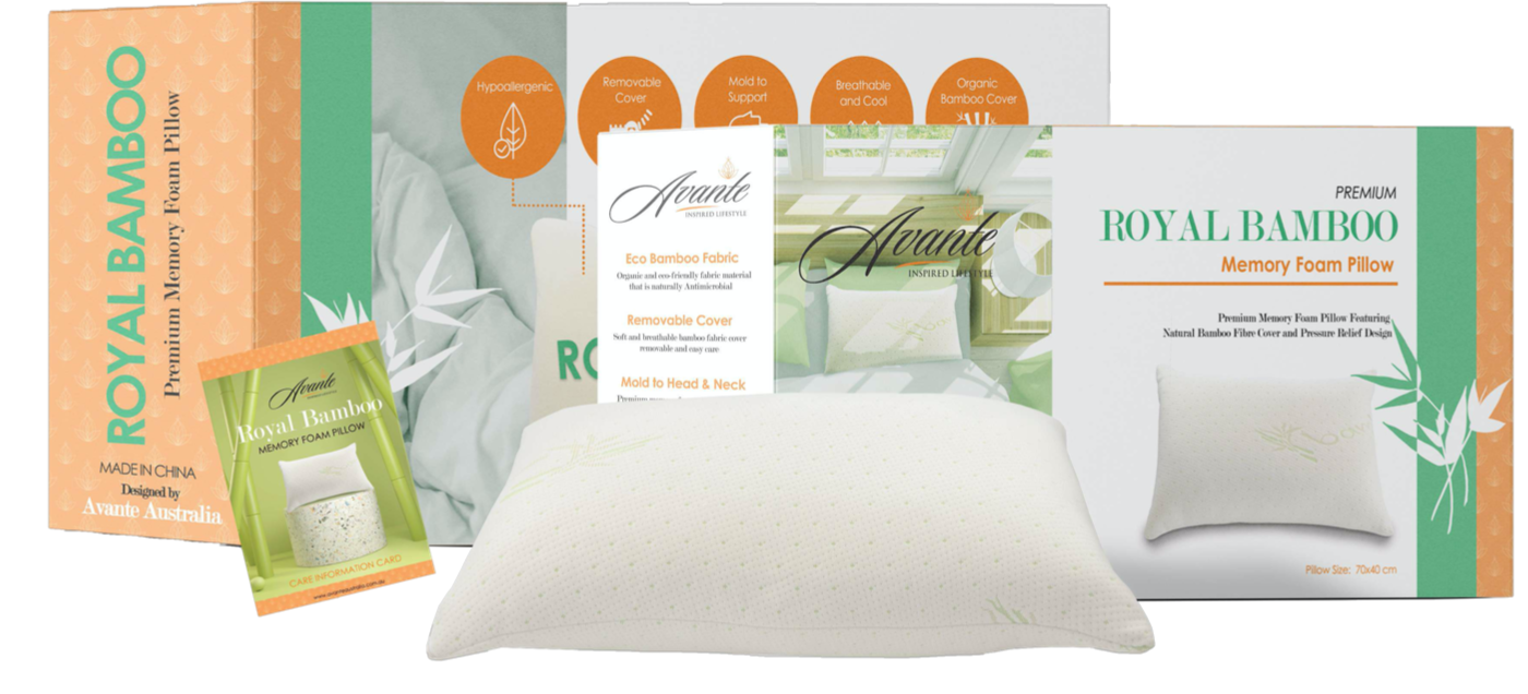 The Avante Royal Bamboo pillow is the premium memory foam pillow features with natural bamboo fiber cover and pressure relief design. Made with organic and eco- friendly bamboo fiber, the pillow is naturally hypoallergenic and antimicrobial. Quality memory foam aid to pressure relief while the molded pillow shape supporting your head and neck. The soft and breathable bamboo fabric will provide exceptional sleeping experience. The pillow is designed for easy maintained with removable cover.