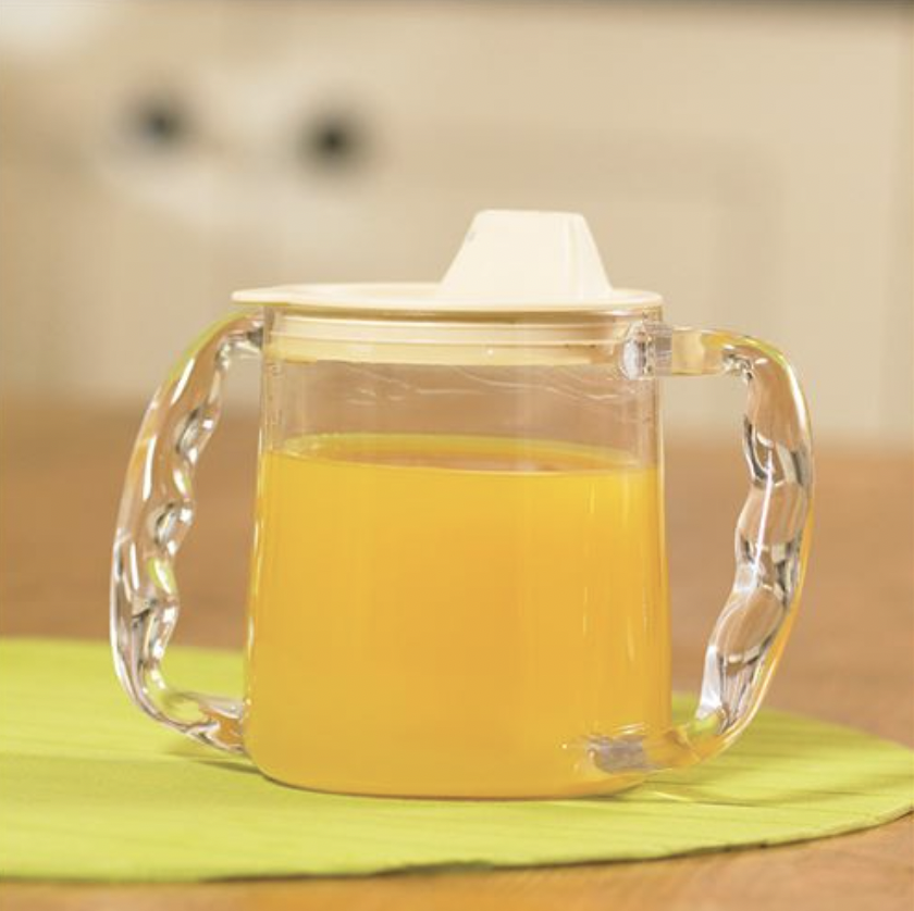 The Homecraft Caring Mug has a wide stable base with two large contoured and angled handles, which enables it to be held in the correct position for drinking. The lid has a well designed spout, and matches the Caring Cutlery range. It is useful for those with tremor or who cannot sit upright. The mug is suitable for use in a microwave oven and dishwasher safe. Supplied with a small aperture lid for liquids. Optional accessory large aperture lid for semi solids also available.