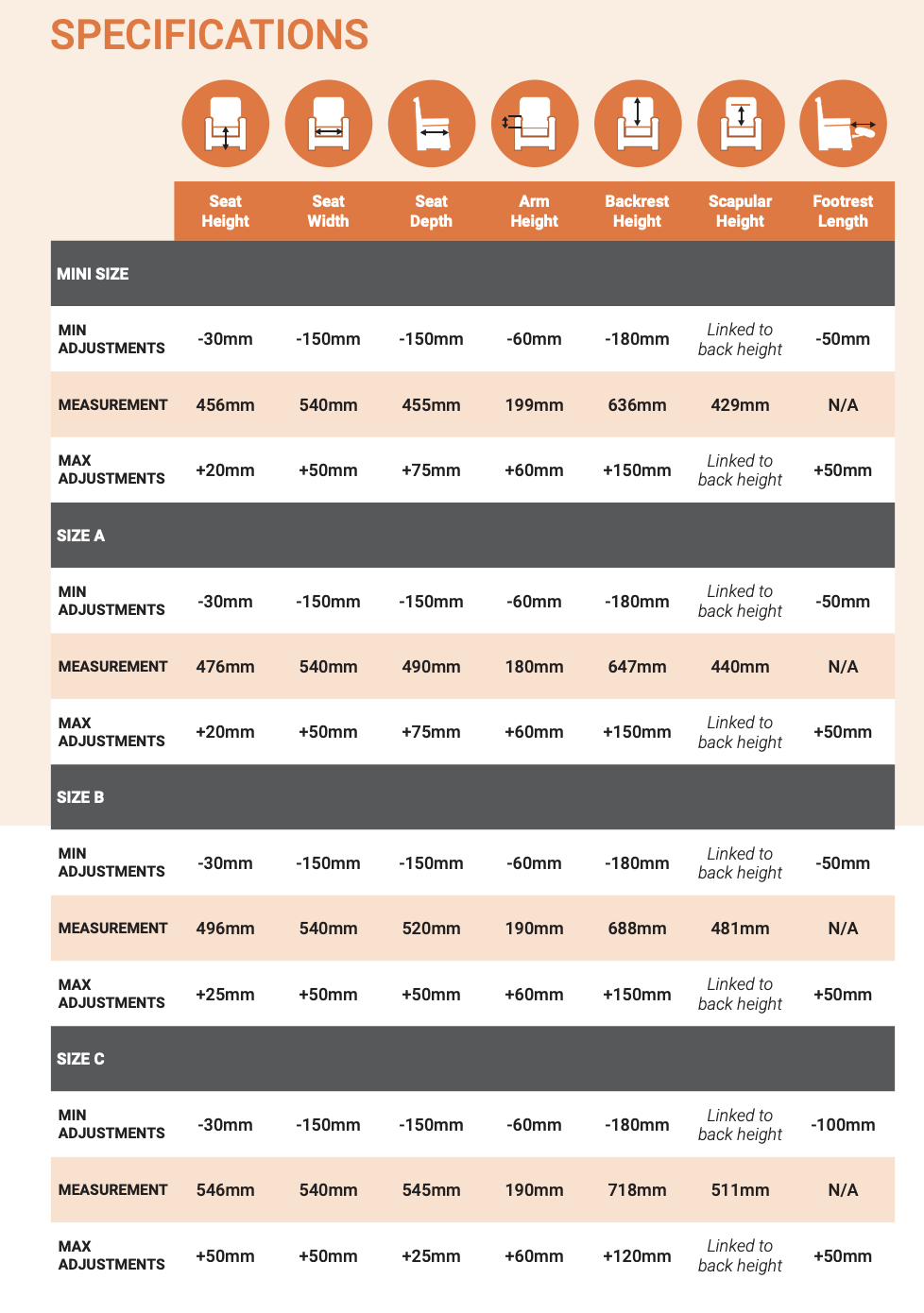 • A to suit height ranges between 157cm (5’2”) to 173cm (5’8”)